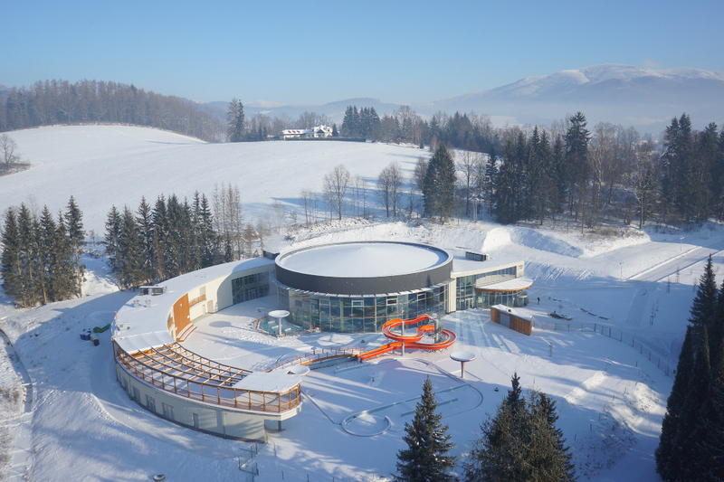 • 5 vnitřních bazénů, mezi nimi velký aktivní bazén s jeskyní a chrliči vody, relaxační bazén s masážními sedátky, panoramatický bazén s výhledem, dětský bazén s vodními prvky a vnitřní tobogán.